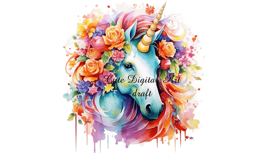 Enchanting Unicorn Delight: Whimsical Clip Art Collection with Floral Flourish